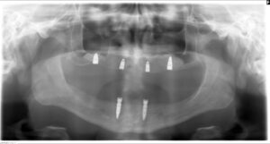 インプラントを下顎に2本、上顎に4本埋入し、